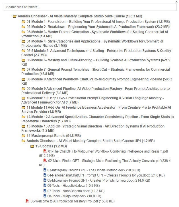 The Ohneis – AI Visual Mastery – Complete Studio Suite Course systems provide a clear blueprint for building your creative studio. This includes: